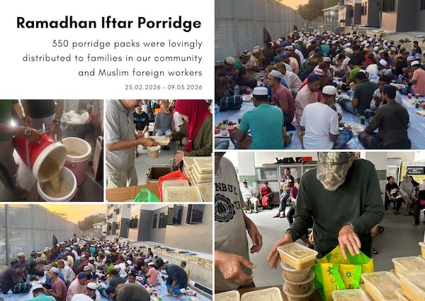 Your support will enable us to deliver not just porridge but a gesture of warmth and solidarity to those (local mosques, foreign workers, and low-income families, with a special focus on those residing in rental flats) who may be facing challenges during this sacred time.